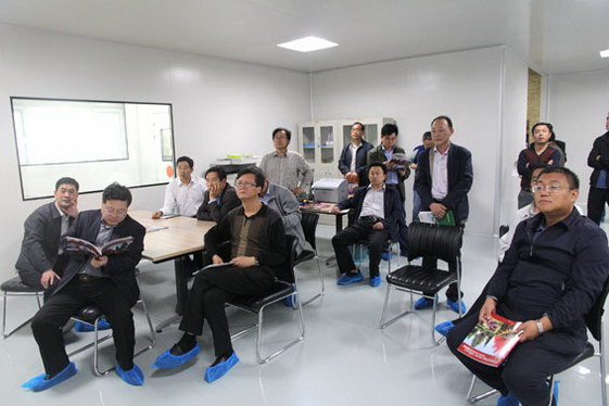 大丰园园区总经理赵总向亓副厅长一行介绍园区的规划、市场前景及技术创新和新产品研发等内容。